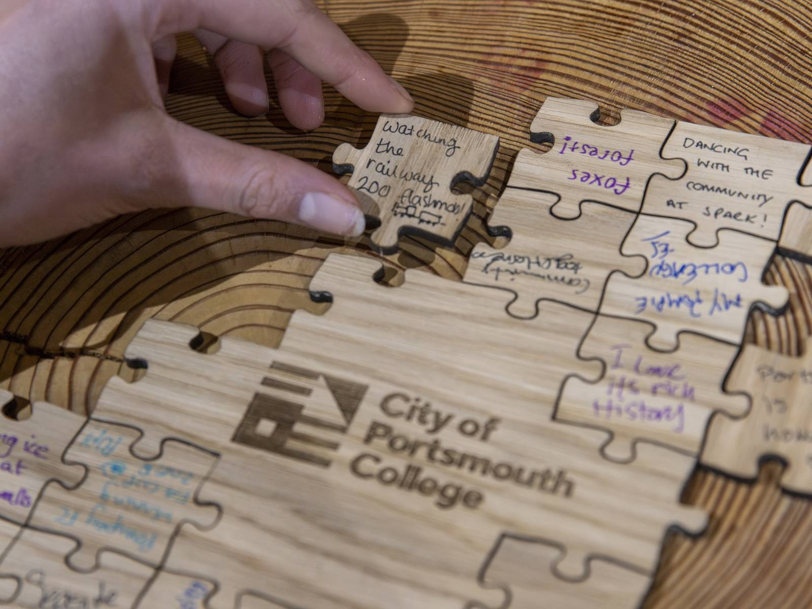 Away from the dinner table, COPC students had organised fun activities to celebrate Portsmouth in various ways. A “hook a duck” game reflected the tradition of seaside games, while an exhibition of the students’ hidden gems of Portsmouth shone a light on places less travelled. Finally, the guests came together to create a piece of interactive art, using puzzle pieces.